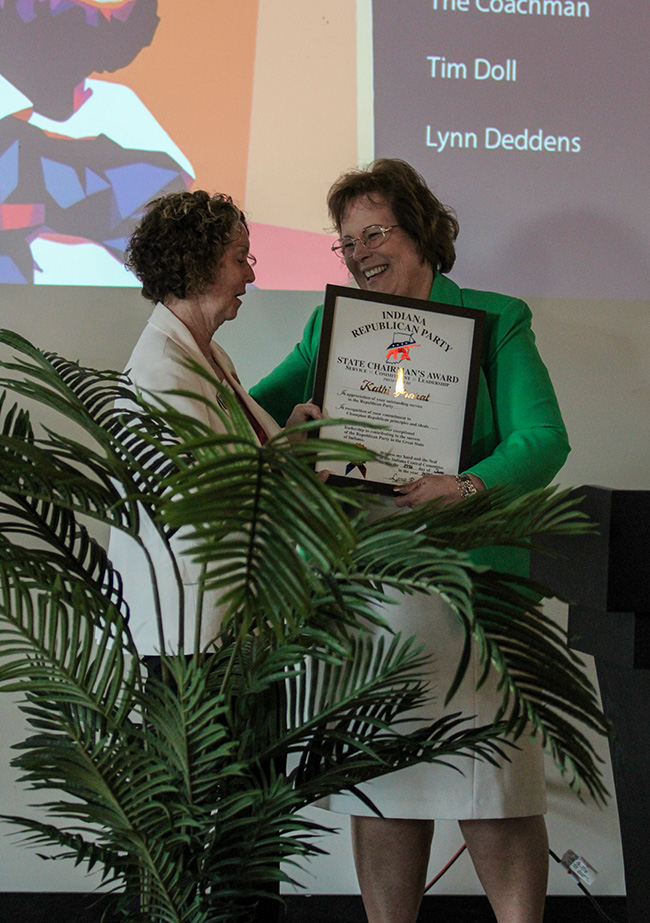 We also had the opportunity to recognize two of our members who have contributed much to our county party, Vice-Chair Kathi Prarat who received the IN GOP Chairwoman’s Award, and past County Chair Mark Dole, with our Community Service Award. Both well deserved!